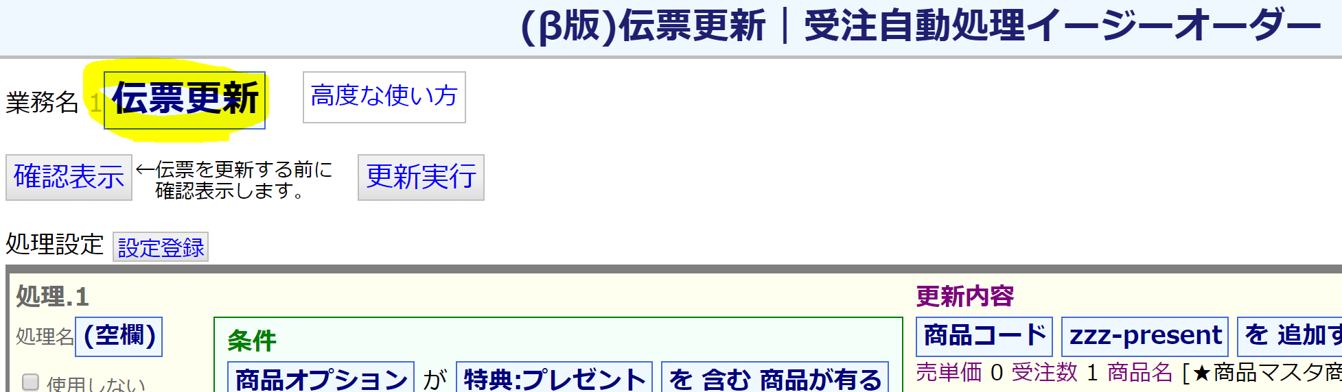 「受注自動処理イージーオーダー」の「(β版)伝票更新」は、